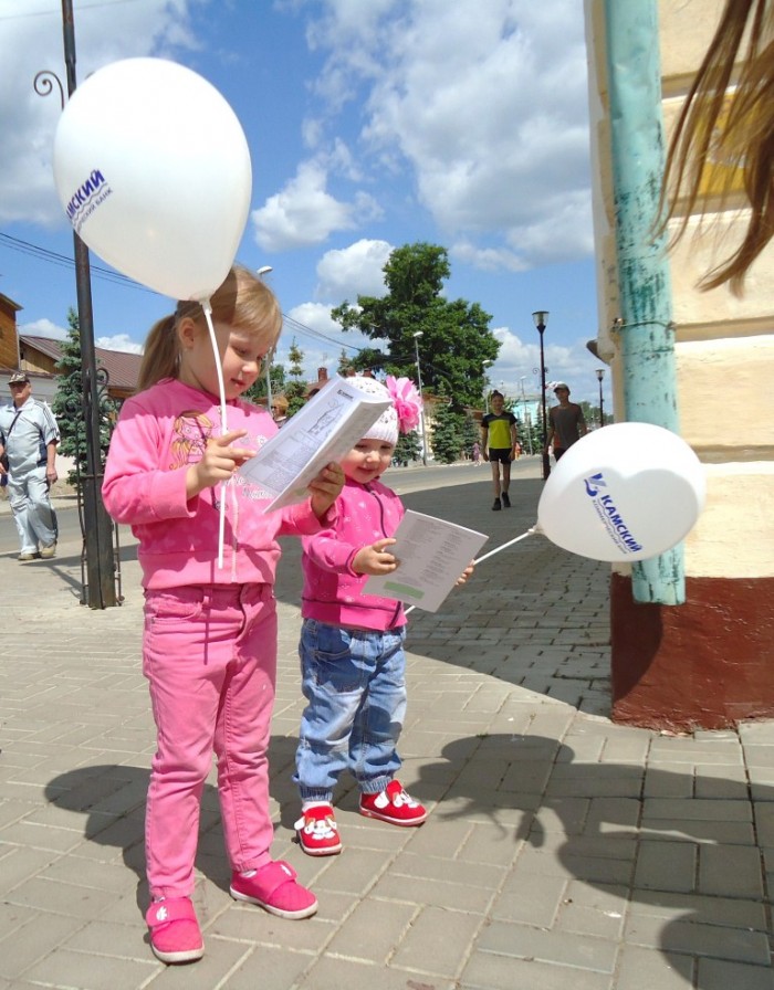 Представители Камского коммерческого банка поздравили жителей города Елабуга с праздником. Специалисты банка дарили маленьким гостям праздника воздушные шары и специально разработанные раскраски от «Камкомбанка», для взрослых банк также подготовил приятные сувениры.