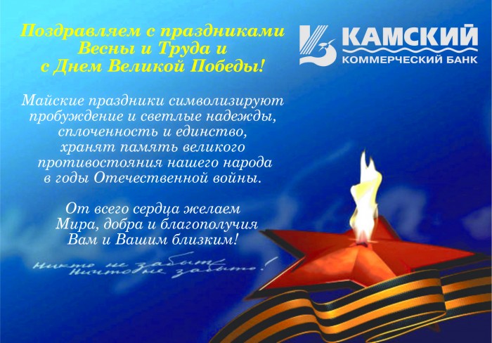 Сообщаем о режиме работы отделений ООО «Камкомбанк» в предпраздничные и праздничные дни: