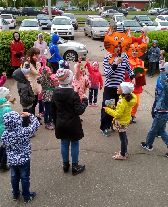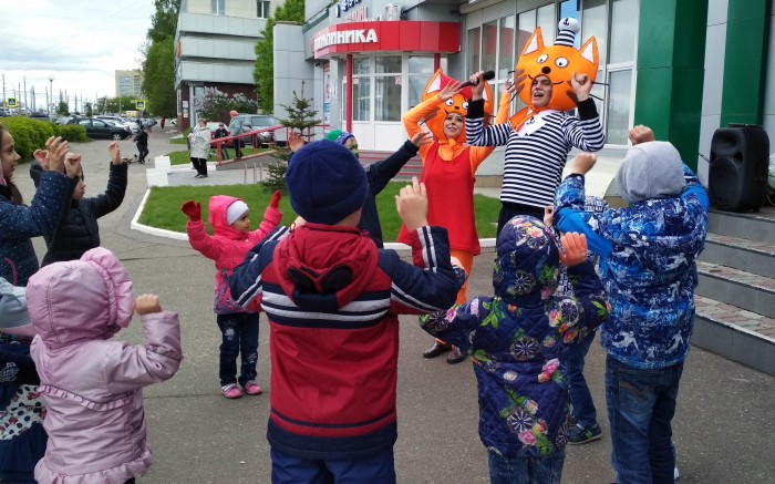 Первого июня детей и их родителей развлекали мультяшные персонажи, которые играли с детьми в разнообразные игры, танцевали, придумывали конкурсы и дарили много призов и сувениров.