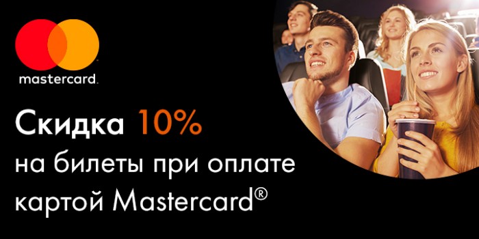 С 1 января 2018 г. по 31 декабря 2018 г. при оплате билетов картой Mastercard в кинотеатрах Объединенной сети «СИНЕМА ПАРК» и «Формула Кино» действует скидка 10%.