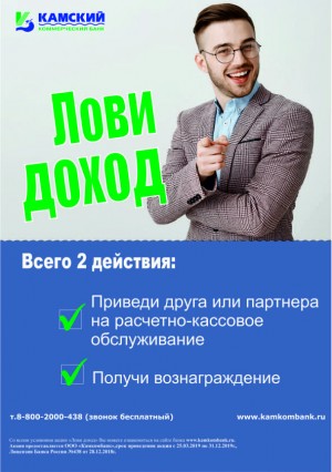 Обслуживание расчетного счета в Камский коммерческий банк может стать еще выгоднее! Специально для наших клиентов мы запустили акцию "Лови доход".