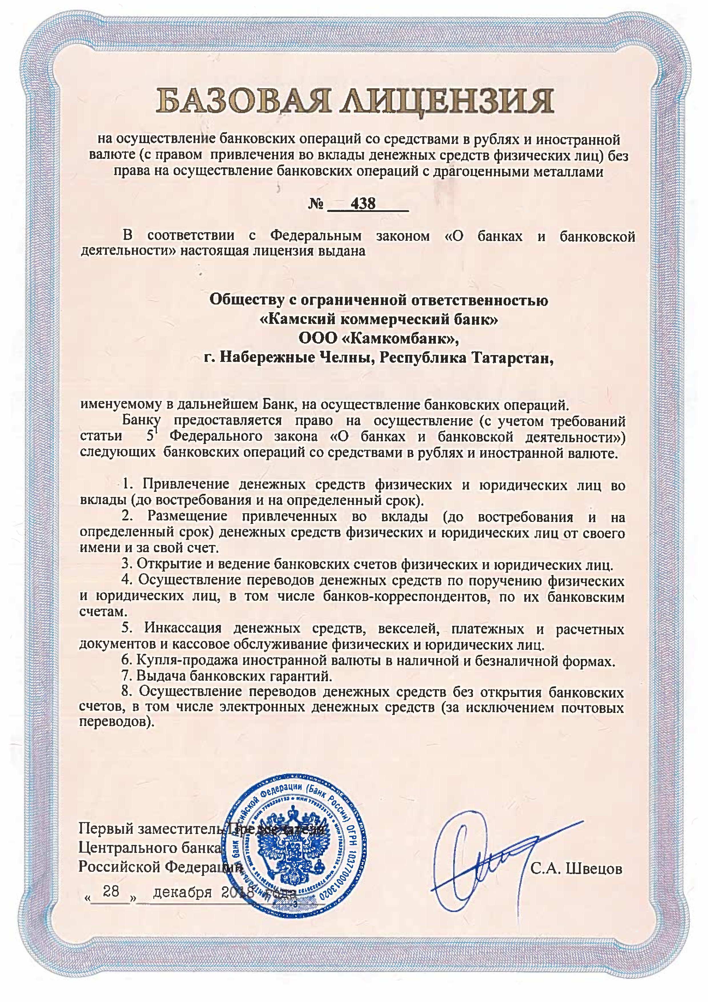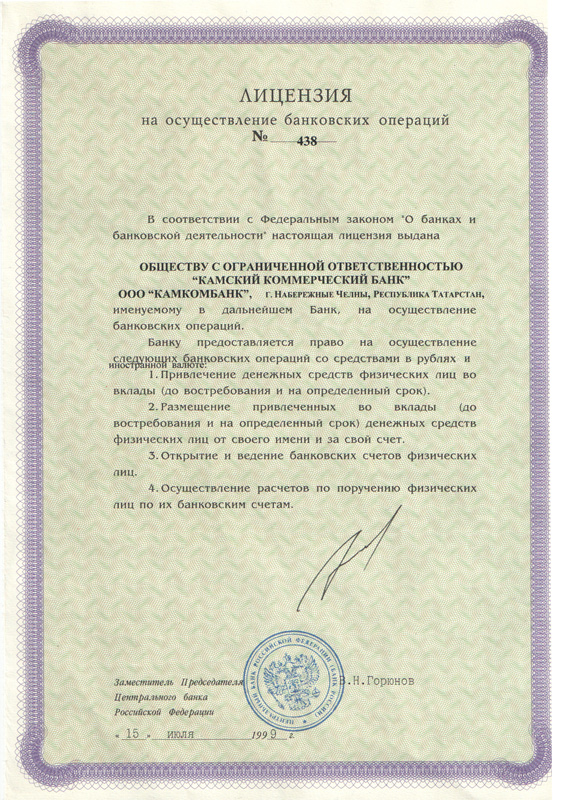 | На осуществление банковских операций со средствами в рублях и иностранной валюте, в т.ч. на привлечение вкладов. |
