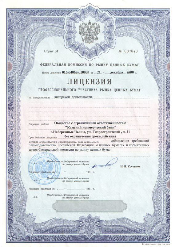 Профессионального участника рынка ценных бумаг на осуществление дилерской деятельности.